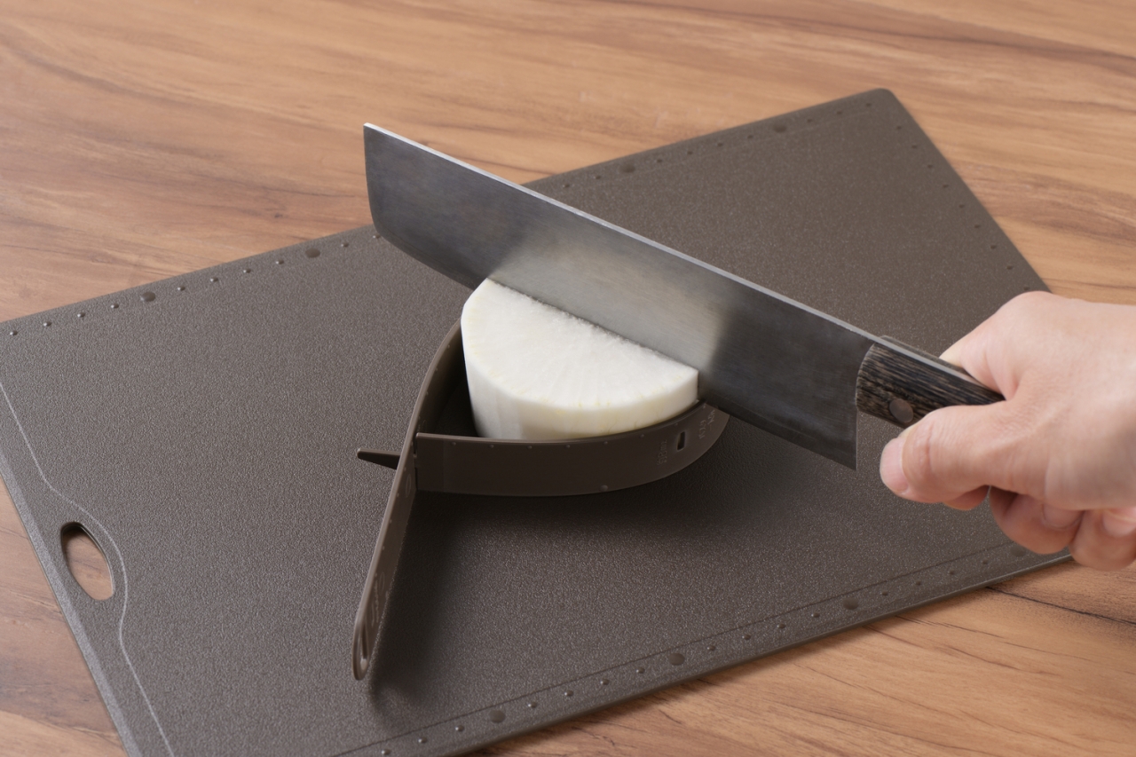 食材のそばにメジャーを置いて手元で均等にカットできます◎