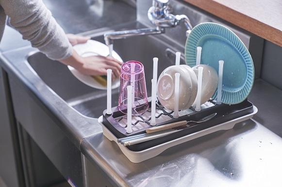 支柱にはコップ類をかけて清潔に水切りもできます!