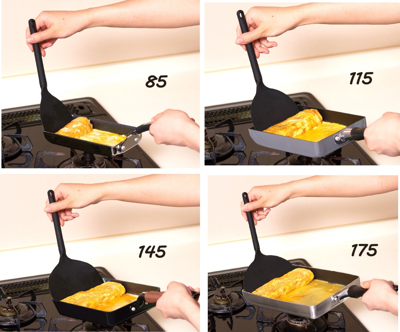 それぞれ大きさの違う卵焼き器に合わせて4サイズ展開です。